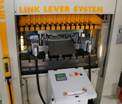 Il dispositivo transfer pneumatico, sincronizzato con la pressa meccanica, è dotato di quadro elettrico e plc.
