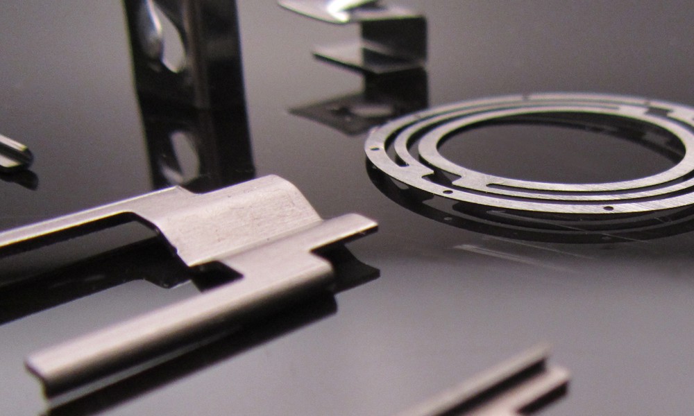Gli stampi per stampaggio della lamiera sono progettati e realizzati nell’officina GMP dove si utilizzano acciai dalle elevate caratteristiche meccaniche; per elevate produzioni vengono impiegati acciai ottenuti con metallurgia delle polveri e successivamente sottoposti a trattamenti superficiali PVD; in questo modo si incrementano notevolmente la resistenza all’usura nelle operazioni di tranciatura. Per particolari soluzioni negli stampi per la lavorazione della lamiera si utilizzano punzoni e matrici in Metallo Duro. Gli stampi progressivi o “a passo” sono sofisticate attrezzature che eseguono una sequenza di lavorazioni su lamiera avvolta in nastro o coil.
